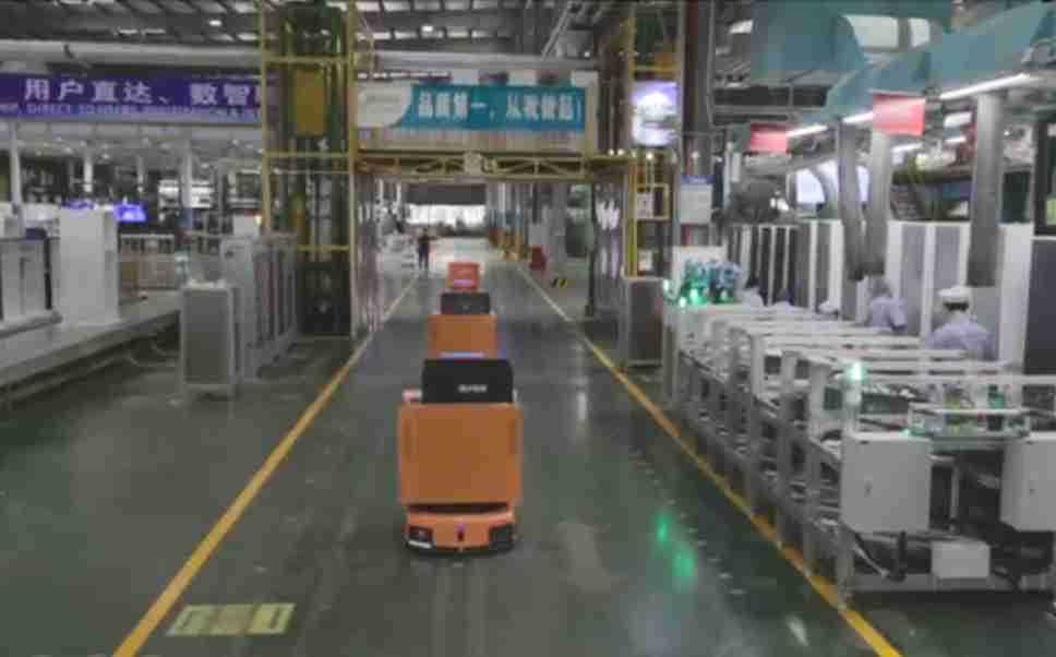 为车载冰箱物流配送打造的智能解决方案,,,,包含产中物流通过潜伏举升AMR搬运至线边,,,产后成品物流智能仓储,,,流程包含产中物流智能齐套入库,,线边安灯叫料AMR智能配送至线边,,,,成品入库、、、出库,,,,通过无人堆高车机器人,,,,智能仓储管理替代人工作业管理,,,实现更高存储、、、、更高效率、、、更具柔性化的解决方案。。。。